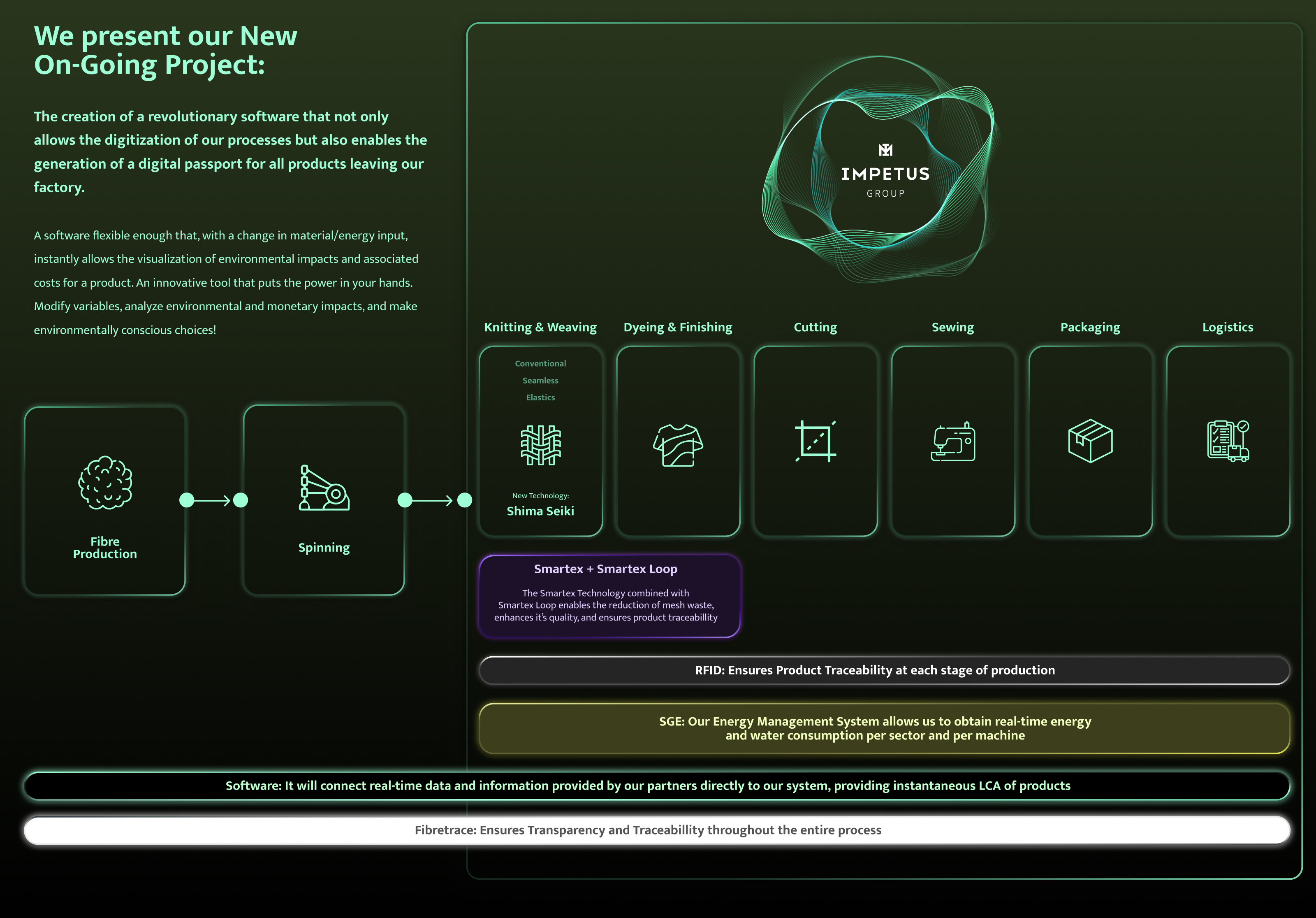 Where are we in the process?We're in the final stages of mapping out the essential processes and industrial data required to calculate the environmental impacts throughout the lifecycle of our selected textile product line. |
